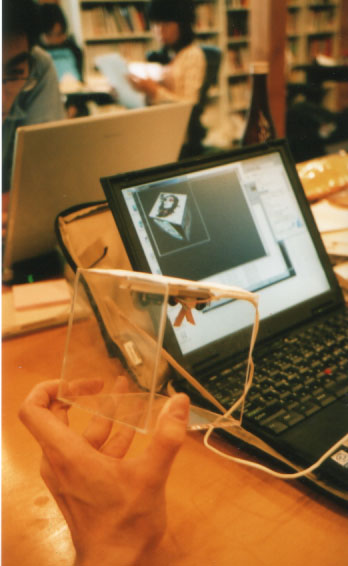 マウスを改造し立方体を上下左右に回転させることでPC上の操作をできるデバイスを製作した。Java 3Dによる立方体の3D画像の回転のインターフェースに利用した。